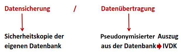 Die pseudonymisierte Datenübertragung wird oft mit der Datensicherung für eine Datenwiederherstellung im Notfall verwechselt. Die Datenübertragung extrahiert lediglich pseudonymisierte Datensätze bezüglich Anamnese, Testungen bzw. Ablesungen, Reaktionen und Relevanzen für den regelmäßigen, halbjährlichen Versand an die IVDK-Zentrale . Patientenstammdaten wie Name, Vorname, Adresse und Geburtsdatum sowie Telefonnummern sind aus Datenschutzgründen nicht enthalten.