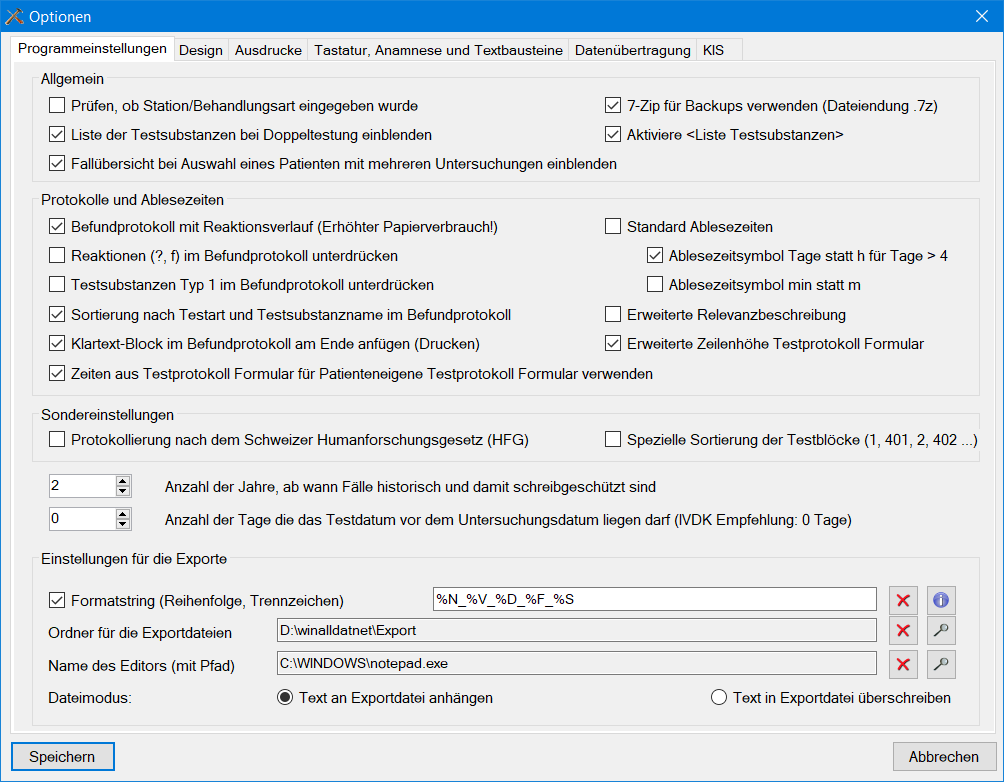 Anzahl der Jahre, ab wann Fälle historisch und damit schreibgeschützt sind, unterbindet die unbeabsichtigte Änderung von Fall- und Testdaten alter Daten (read-only).