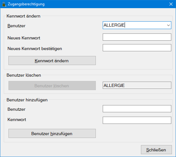 •Als Systemadministrator oder Abteilungsleiter haben Sie hier auch die Möglichkeit, neue Benutzer mit dazugehörigem Passwort anzulegen, bestehende Benutzer zu ändern und zu löschen.